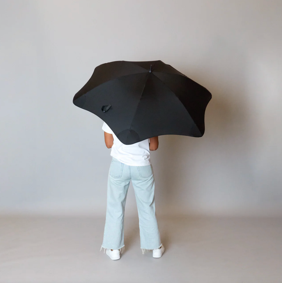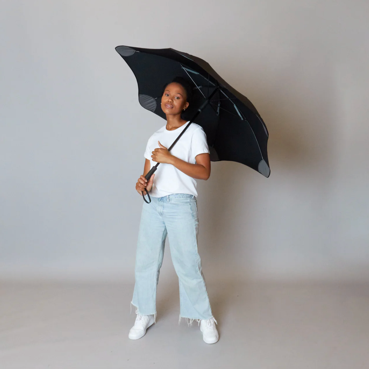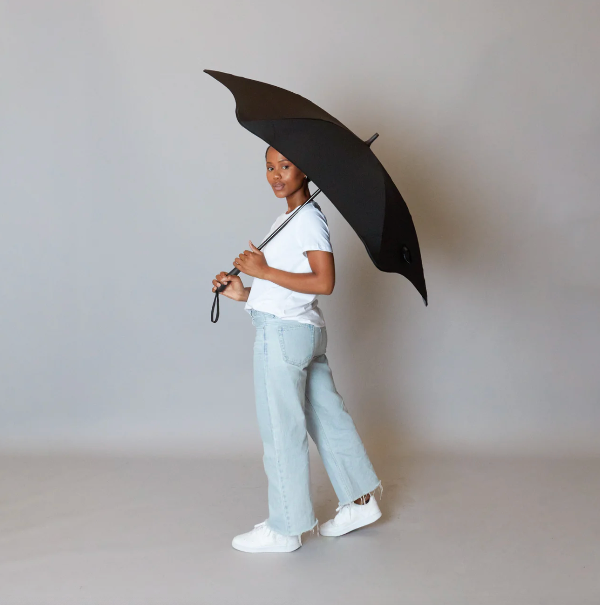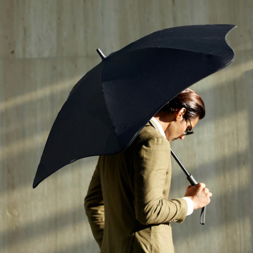 BLUNT Classic. Den traditionelle paraply fra BLUNT er perfekt til dig, som værdsætter stilen og oplevelsen af godt design. BLUNT Classic er en original stilfuld paraply i fuld-størrelse, fuld-længde. Med de patenterede Blunt™ stivere og det ergonomiske håndtag og automatisk åbning giver BLUNT Classic dig den dækning i dårligt vejr, der gør den til den uundværlige følgesvend og rejsevenlig paraply på blæsende og regnfulde dage.