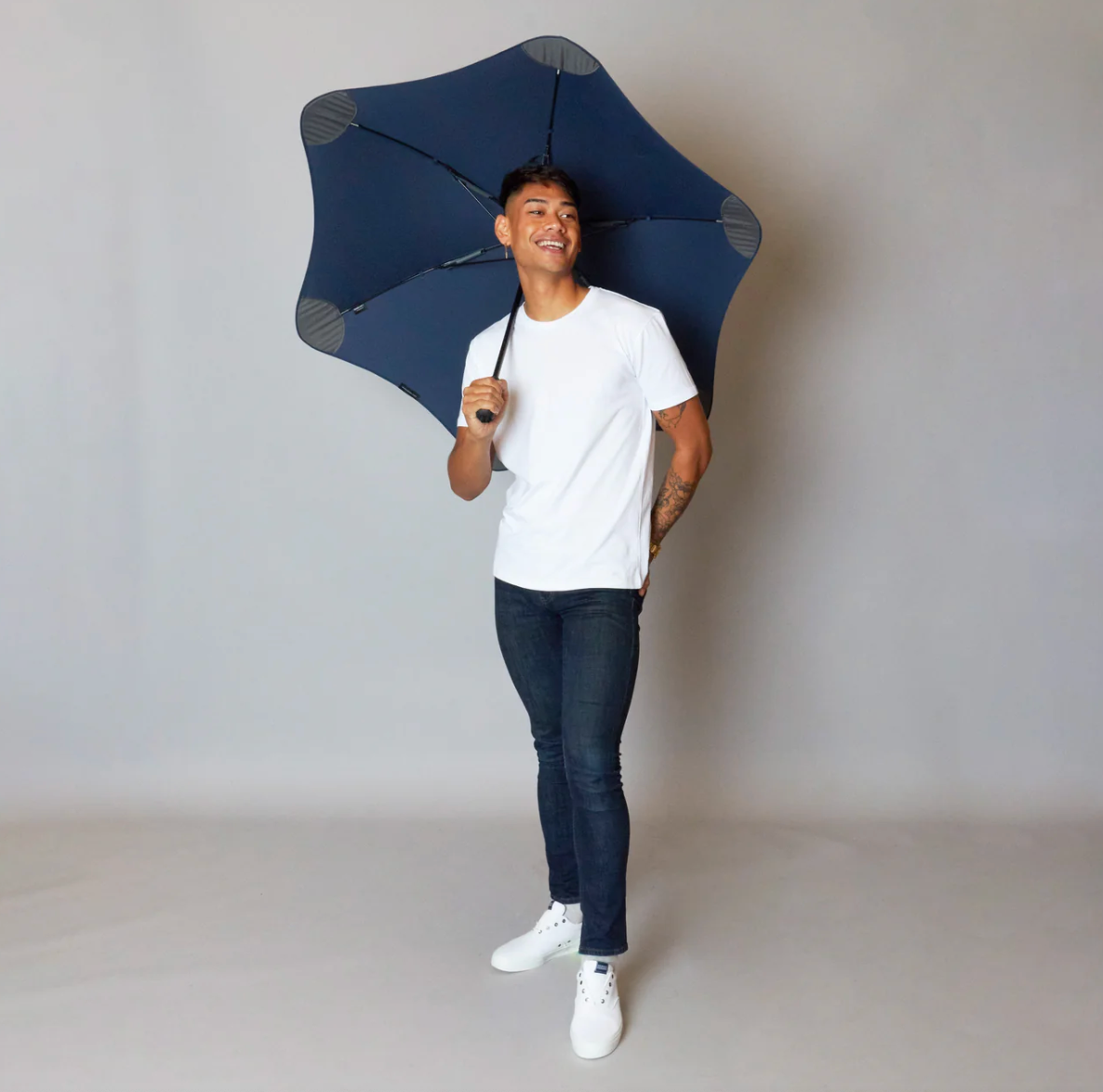 Fordi BLUNT paraplyerne er testet til ekstreme forhold. BLUNT har produceret en paraply hvor man ikke går på kompromis med ydeevne, og derfor  skabt den stærkeste, mest aerodynamiske og beskyttende paraply på markedet. Blunt™ paraplyer er blevet vindtunneltestet til en kategori 1 orkan (115 km/t)*.