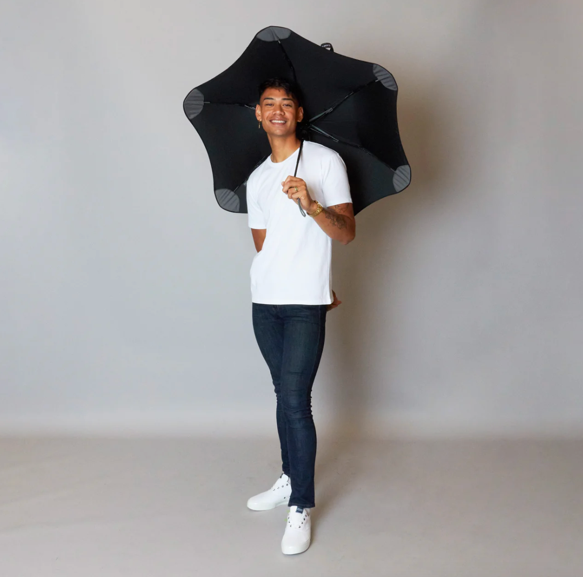 Med en længde på kun 37,5 cm kan du hurtigt trække din BLUNT op af håndtasken eller dokumentmappen, når vejret overrasker dig. Leveres med et farvekoordineret etui.