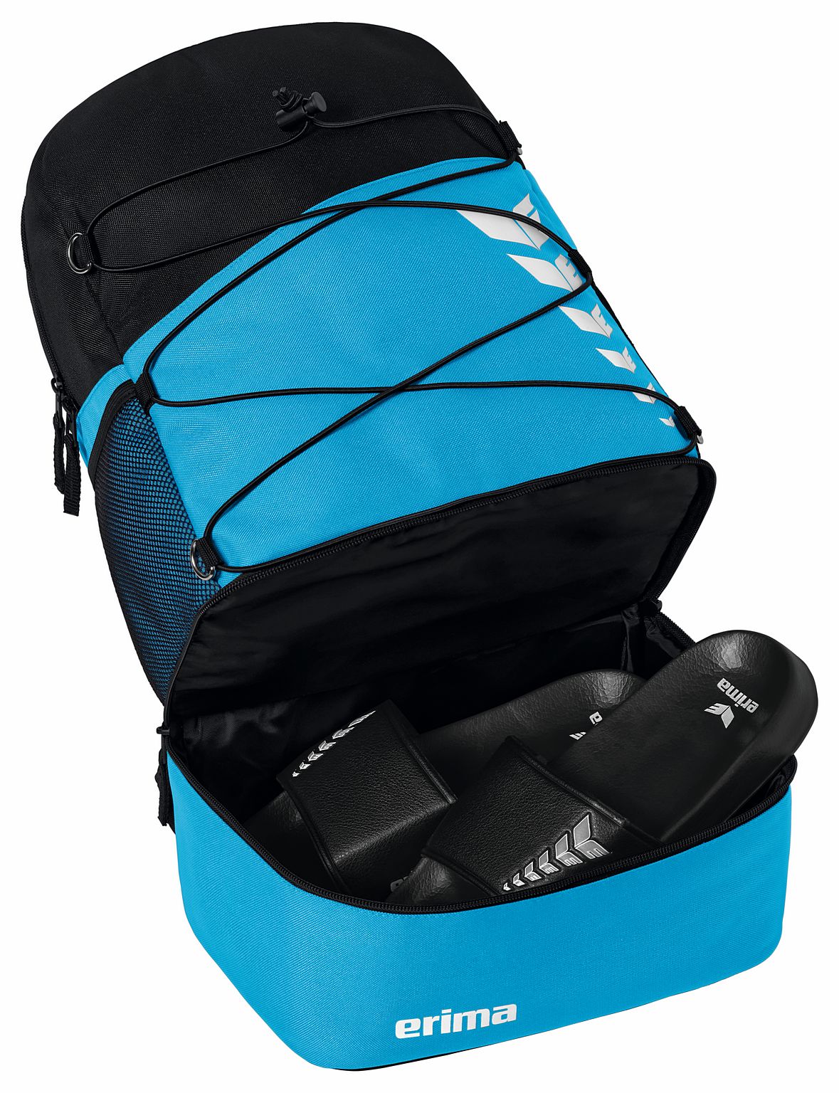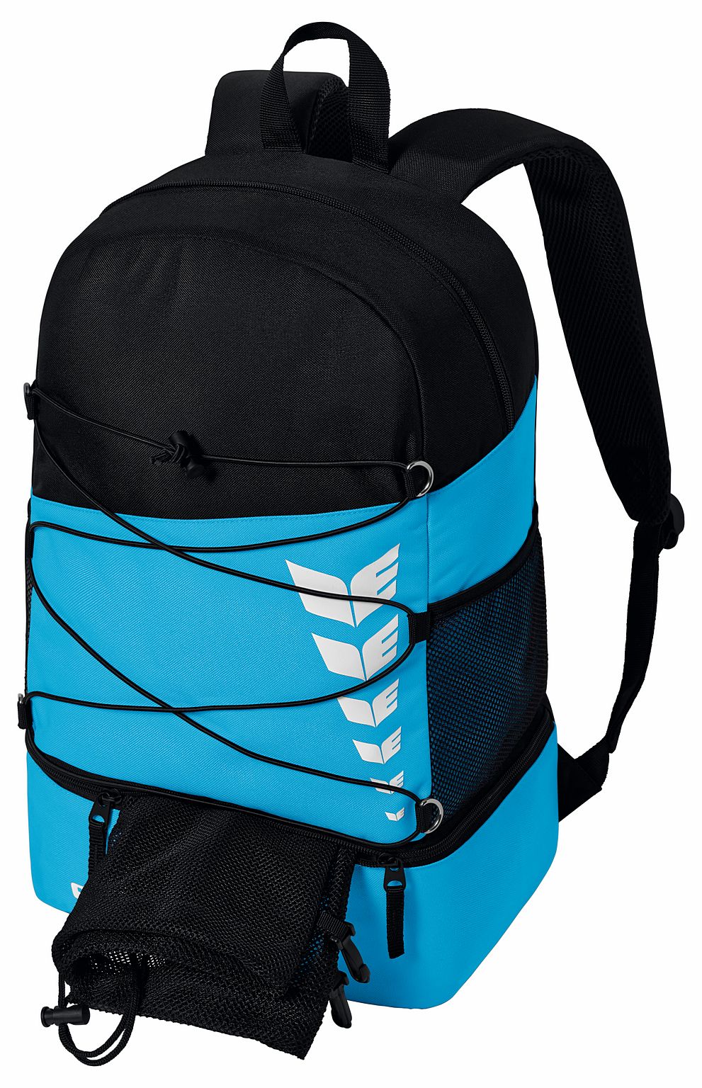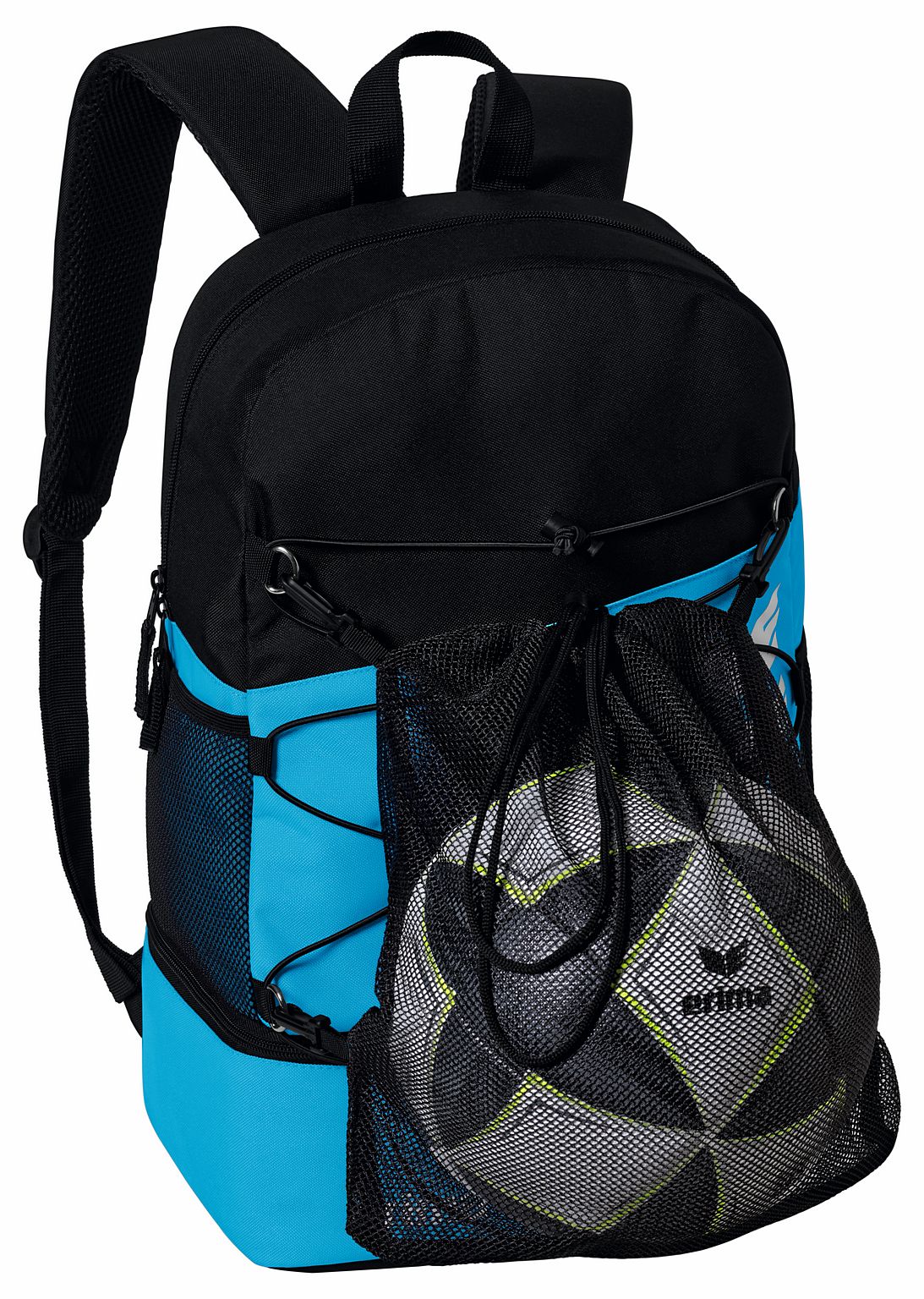 Erima rygsæk. Praktisk rygsæk til sport, skole og fritid med sidelommer, polstrede skulderseler, rum i bunden til f.eks sko og aftagelig net i meshmateriale. En sportstaske med mange muligheder. Perfekt til enhver sport: Det rummelige hovedrum såvel som det separate bundrum tilbyder tilstrækkelig plads til dit udstyr. Rummeligt hovedrum med dobbelt lynlås. Sidelommer lavet af netmateriale. Individuelt justerbar elastisk snor på forsiden. Polstrede skulderstropper. Aftagelig boldpose lavet af netmateriale. Bundrum til separat opbevaring af sko. Materiale: 100% 600D polyester Mål (L x B x H) 30x18x45 cm. Volumen ca. 25 liter.