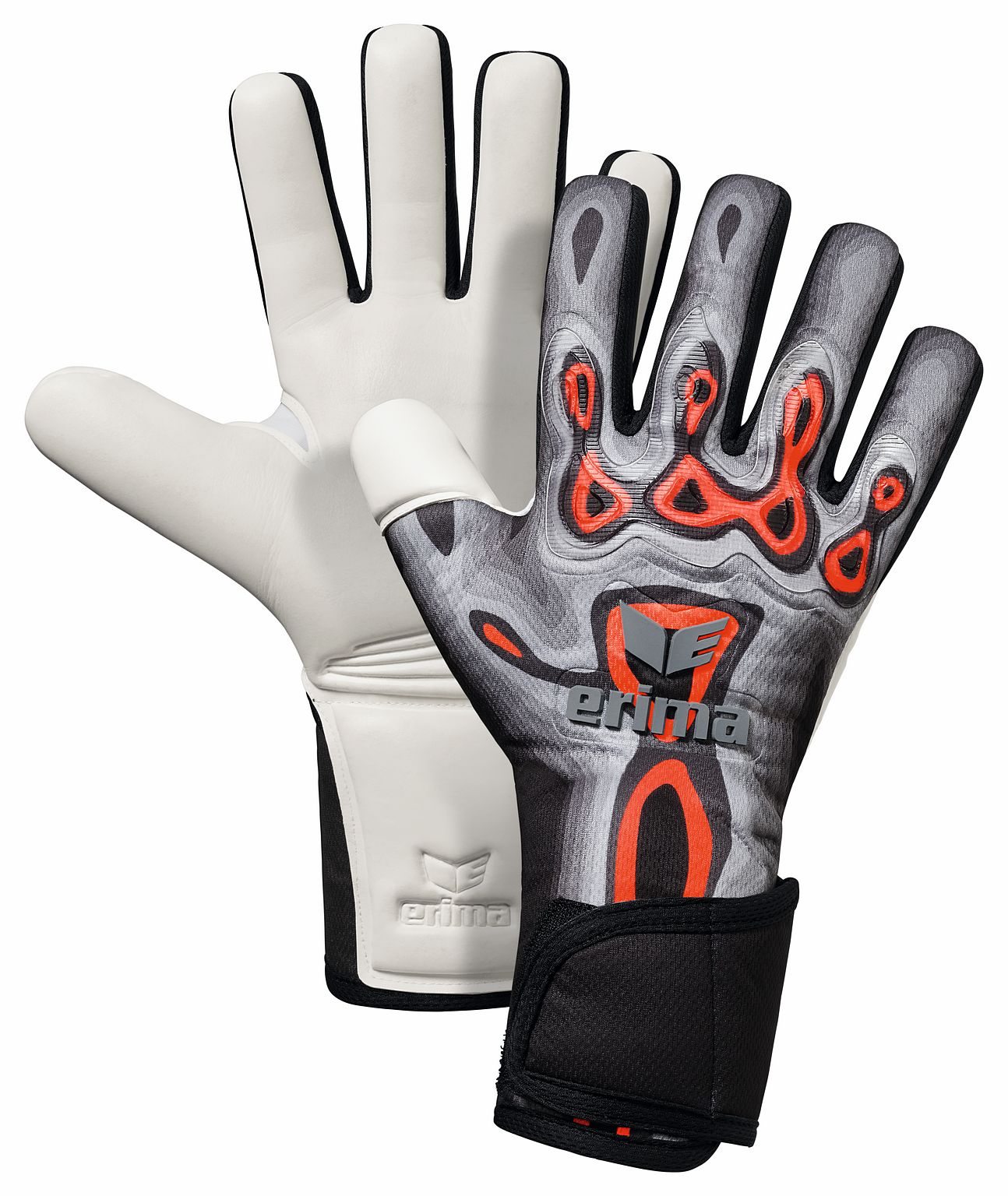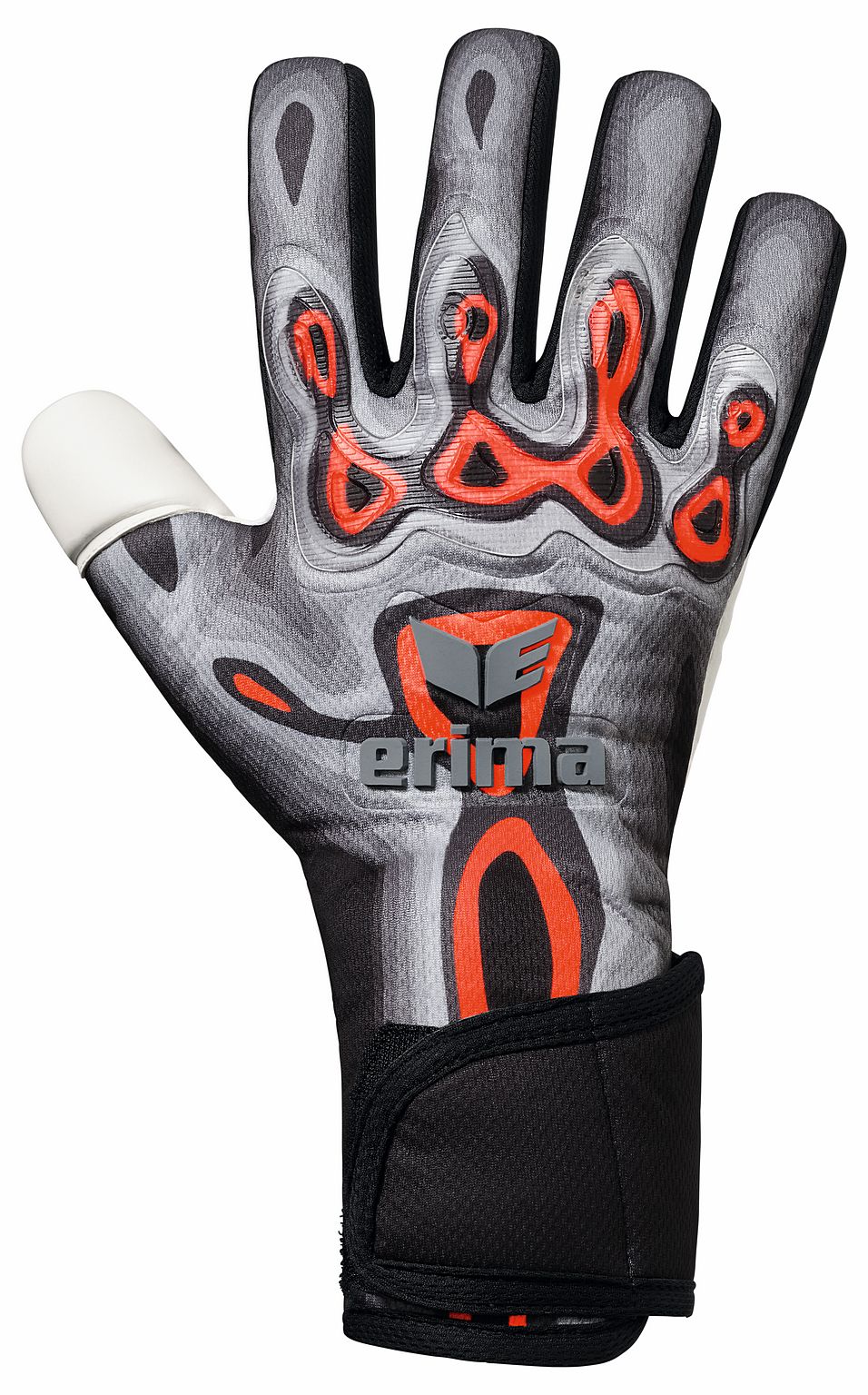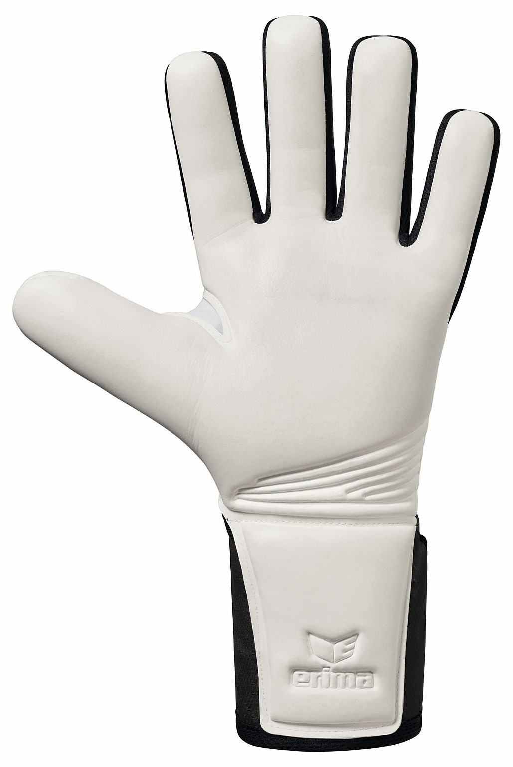 Erima trænings-og kamp handske. En førsteklasses målmandshandske med ultra flexibelt fingerpasform og flexzoner for maksimalt bevægelsefrihed. Handsken har negative cut for optimalt grip på bolden med 4 mm supersoft latex i både tørt og vådt vejr og punch zone til boksning af bolden. Håndleds velcrolukning. 55% latex, 20% gummi, 15% polyester, 5 % silikone, % 5 % nylon