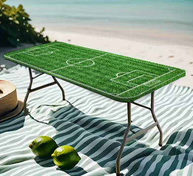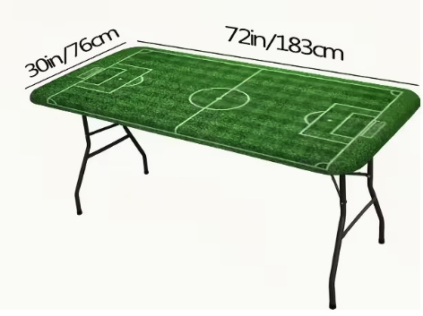 Gør fejringen ekstra sjov med en borddug designet som en fodboldbane. Denne elastiske borddug i grønt polyesterstof med hvide markeringer og mål skaber et levende sportstema, ideelt til børnefødselsdage, fodboldfester og events for både drenge og piger.