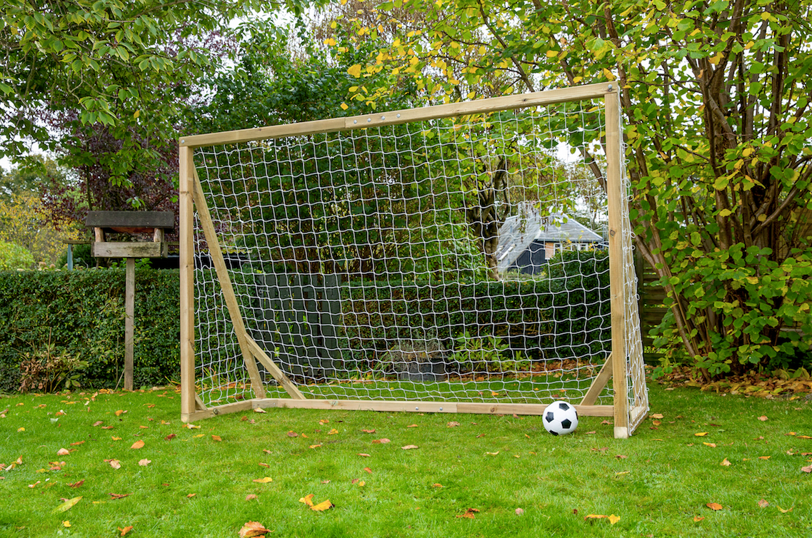 Mål på hele 300 x 200 cm, er perfekt til de især de store børn. Målet er i håndboldstørrelse og derfor også velegnet hvis man bedst kan lide at kaste med bolden. Målet er i massivt 70x70 mm fyrretræ som er særdeles modstandsdygtigt overfor vind og vejr, og nettet er med en trådtykkelse på 3 mm blandt markedets kraftigste. Målet er imprægneret, og holder naturligvis til at stå ude hele året rundt. Målet har høvlede og afrundede kanter, så man ikke behøver være nervøs for splinter. Størrelse: 300 x 200 x 100 cm. Materiale: Solidt fyrretræ 70 x 70 mm. Malet med imprægneringsgrunder. For boret og med afrundede kanter. Rustfrie skruer og kramper. Net: 3 mm kraftigt vejrbestandigt net. Kræver ikke fastgørelse. Farve: Natur fyrtræ